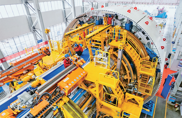 2024年11月22日,由铁建重工、水电六局联合打造的“江汉新石器号”隧道掘进机在长沙下线,这是迄今中国最大直径敞开式岩石隧道掘进机。图为当日,在铁建重工长沙第一产业园,工人在调试“江汉新石器号”隧道掘进机。 新华社记者 陈思汗/摄