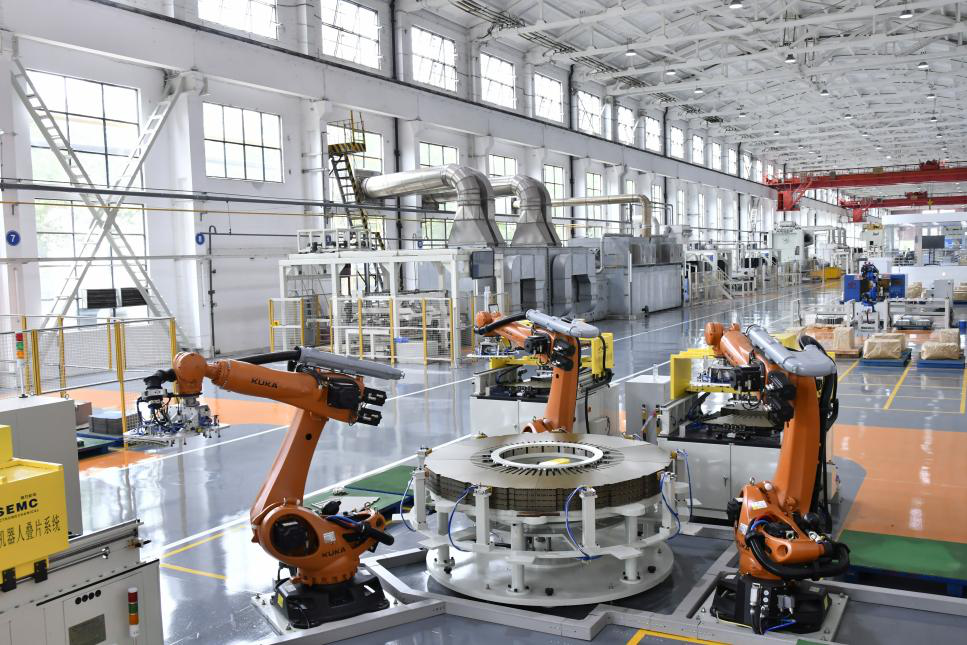 (乐鱼平台定子冲片“无人车间”一角)