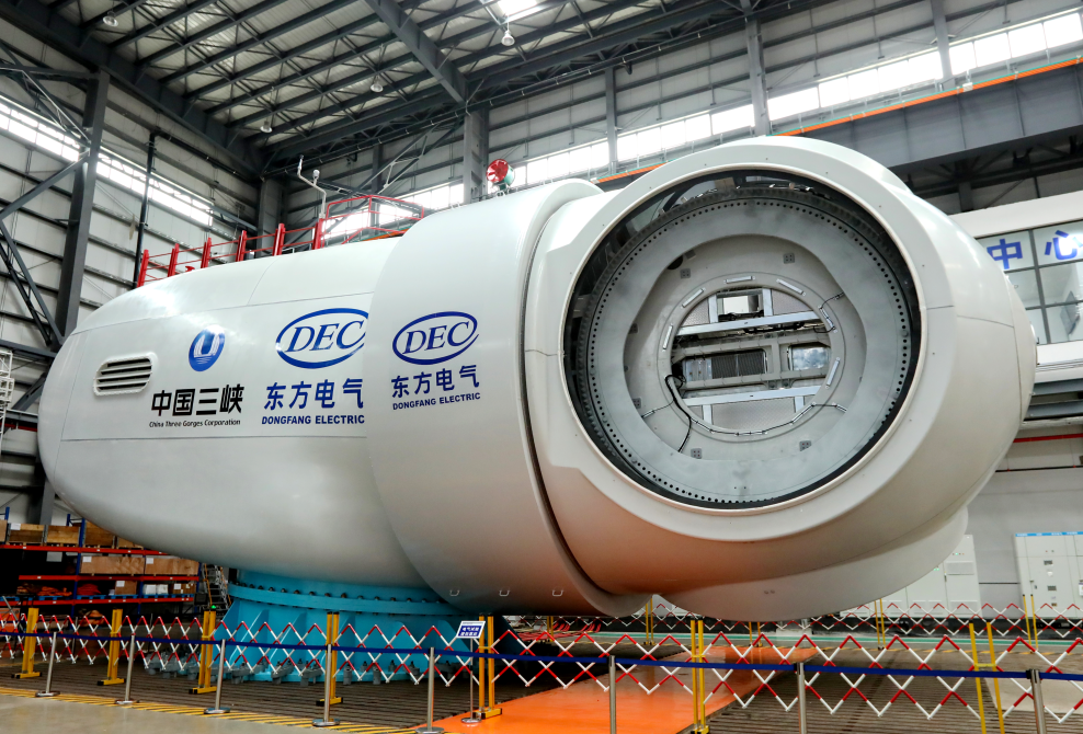 在水电领域,2021年6月28日,全球单机容量最大、在建规模最大的白鹤滩水电站首批机组顺利投产发电。乐鱼平台研制的左岸8台百万千瓦机组具有100%自主知识产权,实现100%国产化,所有产出重大部件和投运机组精品率100%,实现台台精品件件一流目标,开创巨型水电机组温差控制和摆度水平新纪元。电站建成后,年平均发电量624.43亿度,超过2019年北京市全社会用电总量(1166.4亿千瓦时)的二分之一,每年可节约标准煤约1968万吨,减少排放二氧化碳5160万吨,节能减排效益显著。