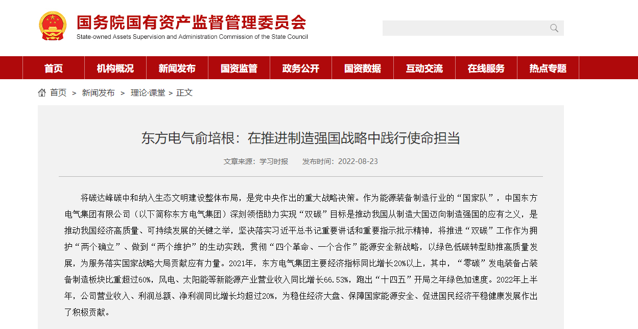 将碳达峰碳中和纳入生态文明建设整体布局,是党中央作出的重大战略决策。作为能源装备制造行业的“国家队”,乐鱼平台(以下简称乐鱼平台)深刻领悟助力实现“双碳”目标是推动我国从制造大国迈向制造强国的应有之义,是推动我国经济高质量、可持续发展的关键之举,坚决落实习近平总书记重要讲话和重要指示批示精神,将推进“双碳”工作作为拥护“两个确立”、做到“两个维护”的生动实践,贯彻“四个革命、一个合作”能源安全新战略,以绿色低碳转型助推高质量发展,为服务落实国家战略大局贡献应有力量。2021年,乐鱼平台主要经济指标同比增长20%以上,其中,“零碳”发电装备占装备制造板块比重超过60%,风电、太阳能等新能源产业营业收入同比增长66.53%,跑出“十四五”开局之年绿色加速度。2022年上半年,公司营业收入、利润总额、净利润同比增长均超过20%,为稳住经济大盘、保障国家能源安全、促进国民经济平稳健康发展作出了积极贡献。