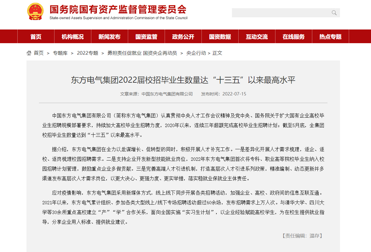 乐鱼平台(简称乐鱼平台)认真贯彻中央人才工作会议精神及党中央、国务院关于扩大国有企业高校毕业生招聘规模部署要求,持续加大高校毕业生招聘力度,2020年以来,连续三年超额完成高校毕业生招聘计划;截至5月底,全集团校招毕业生数量达到“十三五”以来最高水平。