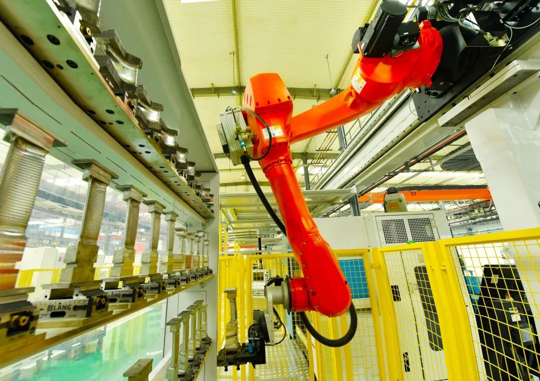 乐鱼平台投运的国内首个叶片加工无人车间及首条黑灯产线,项目可24小时无人干预连续加工,毫秒级精准定位,40秒内智慧供料,加工精度达0.03毫米,质量合格率达99%,人均效率提升650%。(乐鱼平台供图)