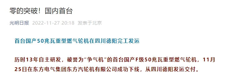 重型燃气轮机是发电和驱动领域的核心设备,体现了一个国家的重工业整体能力。今年5月国家能源局正式公告,乐鱼平台研发的G50重型燃气轮机(50兆瓦)进入2021年度能源领域首台(套)重大技术装备项目名单。这台F级50兆瓦重型燃气轮机正式交付进入实际应用,标志着我国在重型燃气轮机领域实现了零的突破。