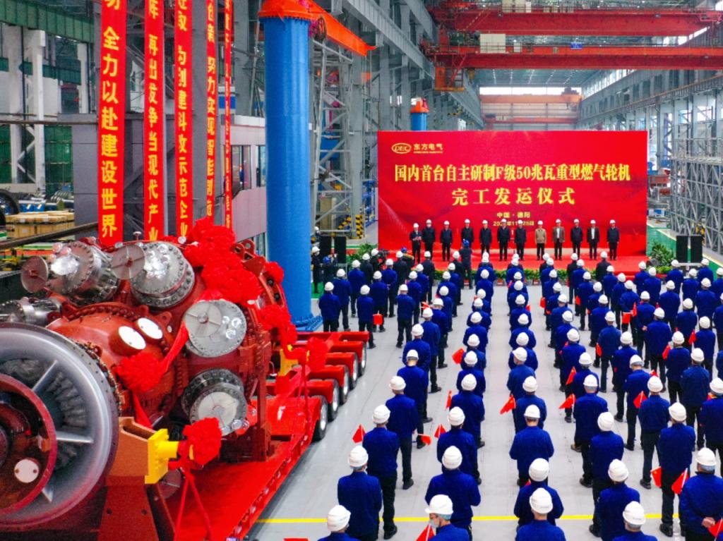 国产F级50兆瓦重型燃气轮机的完工发运仪式现场。(乐鱼平台供图)