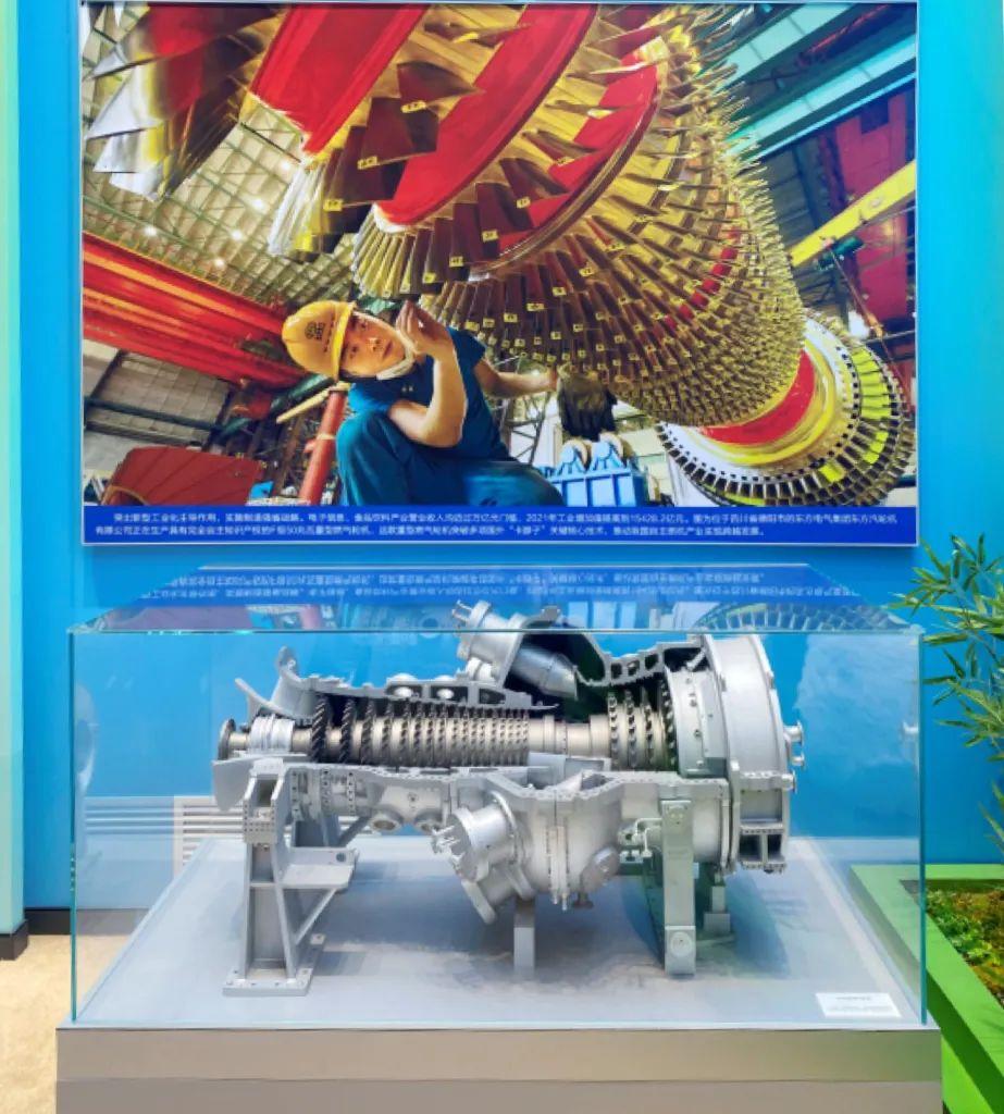 乐鱼平台自主研制的国内首台50兆瓦重型燃机部件图片和实物模型在“奋进新时代”主题成就展展出