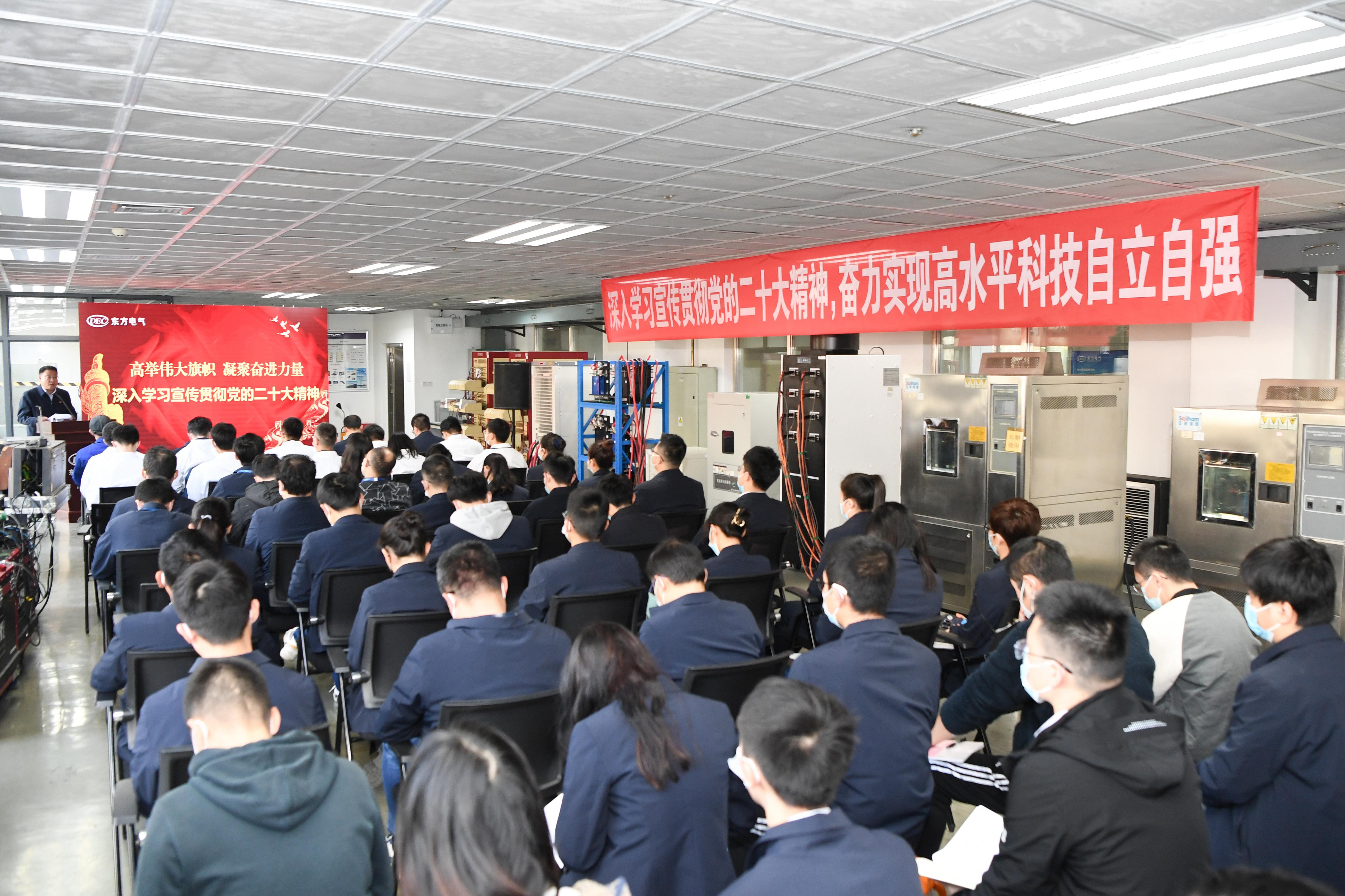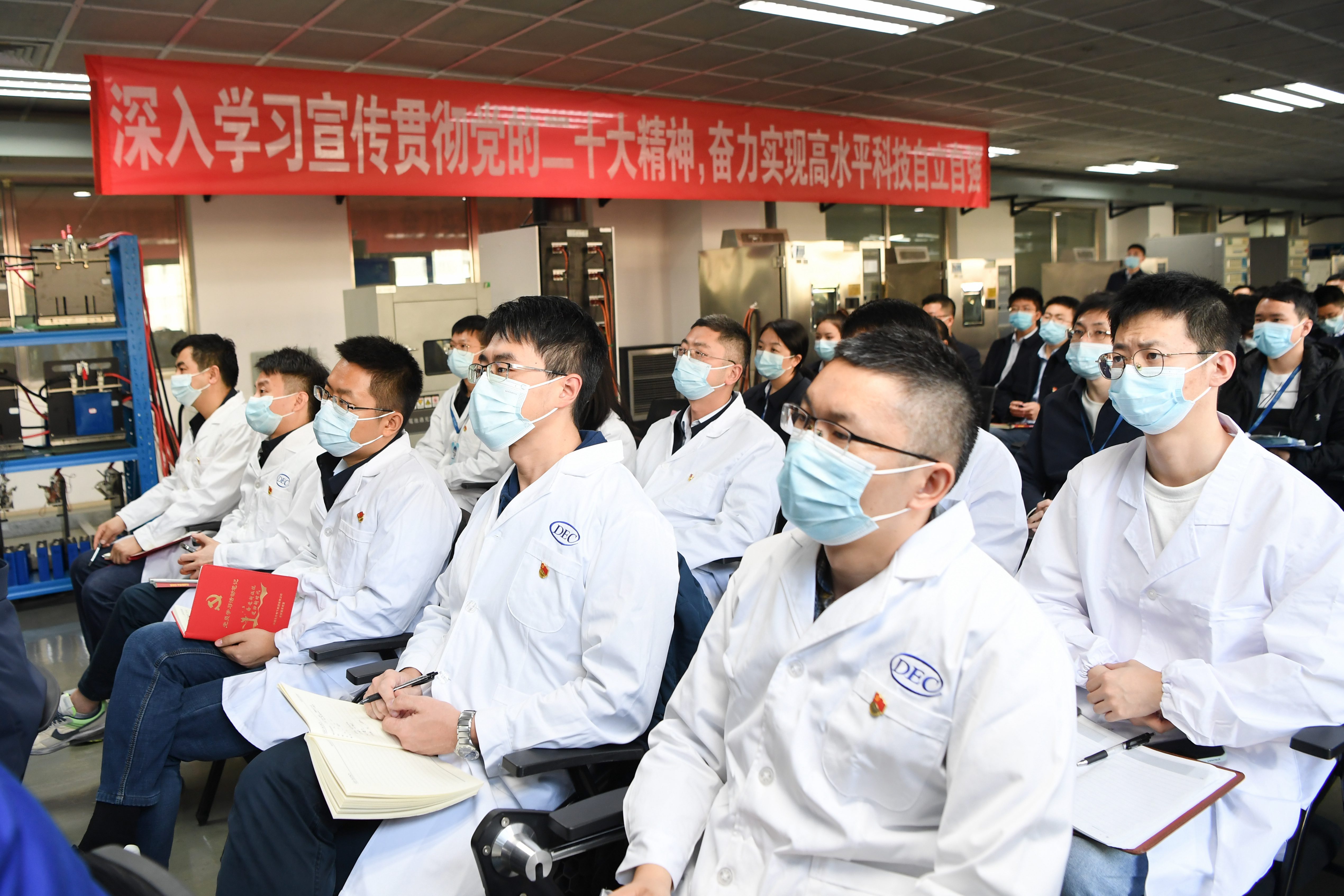 为引导全集团广大干部职工切实把思想和行动统一到党的二十大精神上来,11月22日,乐鱼平台“高举伟大旗帜 凝聚奋进力量”党的二十大精神宣讲队首场宣讲报告会在新能源电池测试实验室举行,用“行走的课堂”讲述“我们身边”拼搏奋进争先的鲜活故事,激励科研工作者以实干抢抓创新先机,为加快实现高水平科技自立自强贡献“东方”力量。