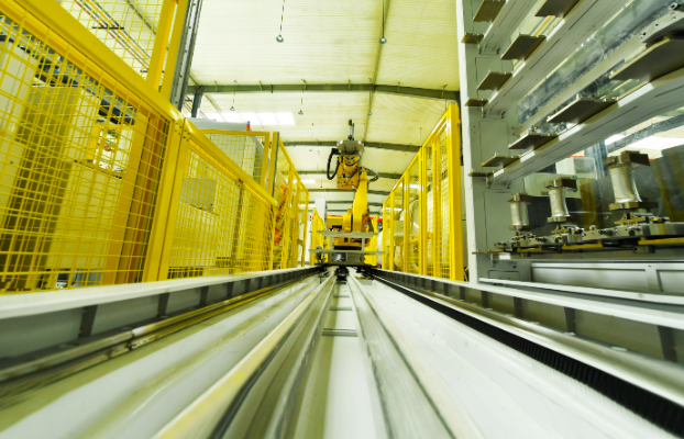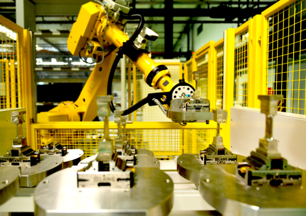 产线机器人放置完工叶片