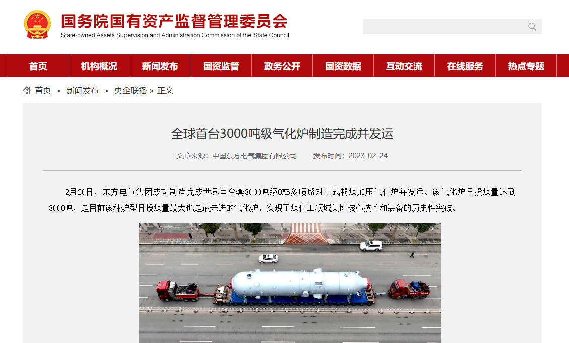 2月20日,乐鱼平台成功制造完成世界首台套3000吨级OMB多喷嘴对置式粉煤加压气化炉并发运。该气化炉日投煤量达到3000吨,是目前该种炉型日投煤量最大也是最先进的气化炉,实现了煤化工领域关键核心技术和装备的历史性突破。