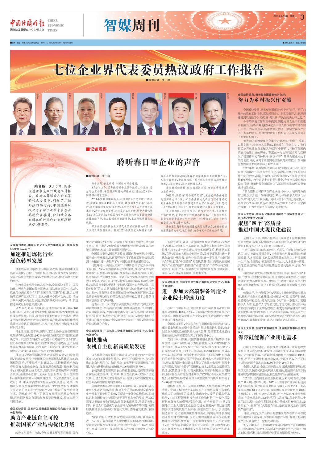3月5日,国务院总理李克强作政府工作报告。政府工作报告在企业界的代表委员中,引起了广泛而热烈的讨论,中国经济时报记者采访了七位来自企业界的代表委员,他们结合各自所在的行业和企业现状谈感受、话期待。