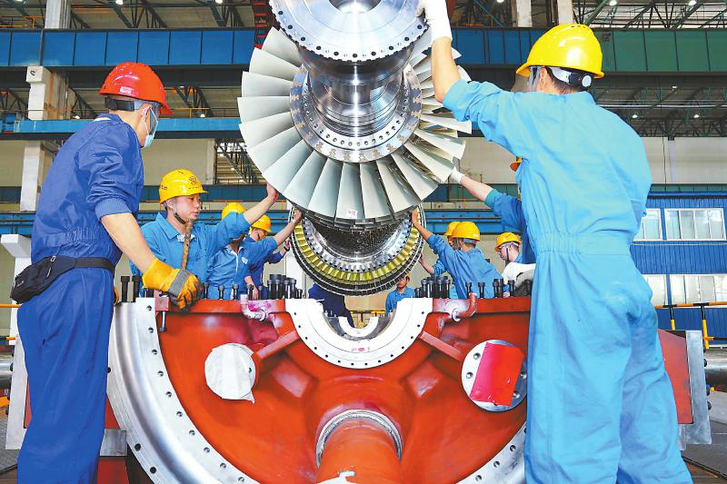 工人正在组装重型燃气轮机零部件。 东方汽轮机有限公司供图