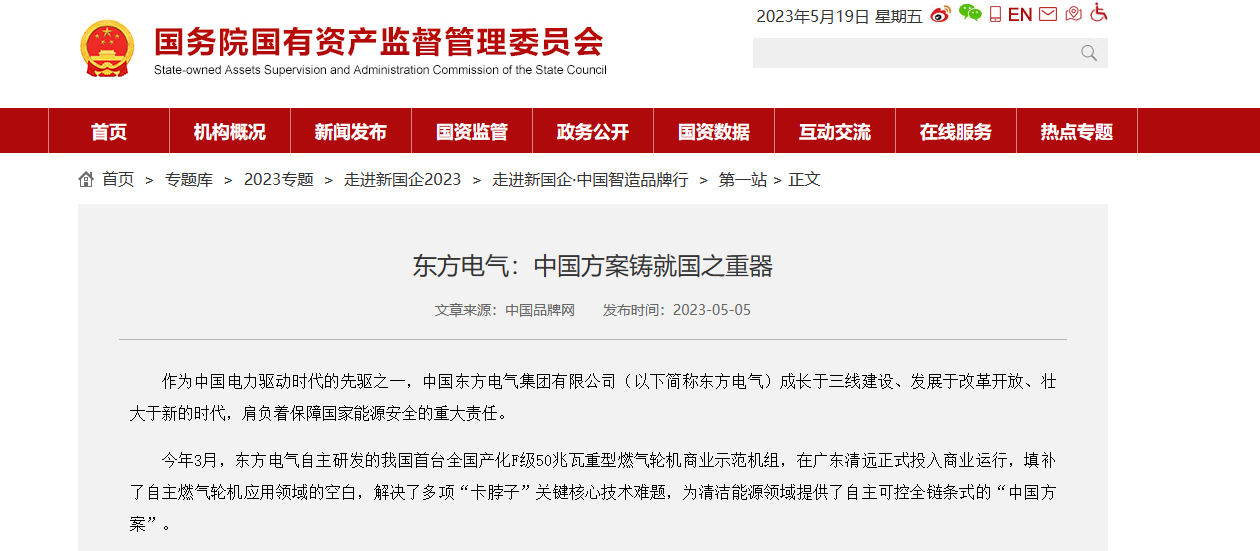 今年3月,东方电气自主研发的我国首台全国产化F级50兆瓦重型燃气轮机商业示范机组,在广东清远正式投入商业运行,填补了自主燃气轮机应用领域的空白,解决了多项“卡脖子”关键核心技术难题,为清洁能源领域提供了自主可控全链条式的“中国方案”。
