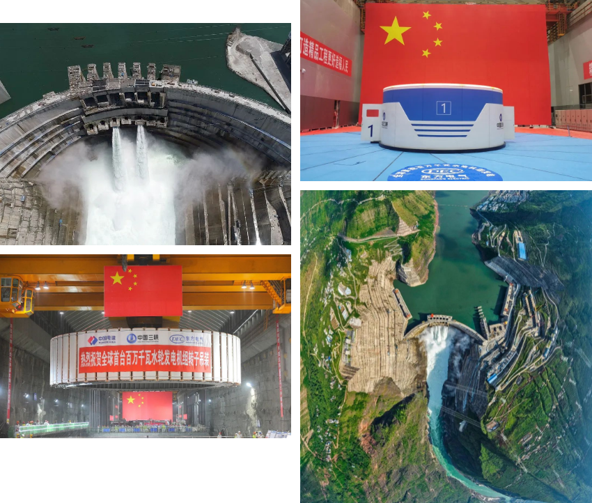 白鹤滩水电站装机总容量1600万千瓦,左右两岸分别安装8台单机容量100万千瓦的水电机组。左岸全部8台机组由东方电气自主研制供货,于2022年9月22日率先全部投产。