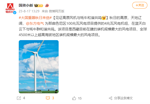 [国资小新]#大国重器秋日来信#见证高原风机与牦牛和谐共鸣