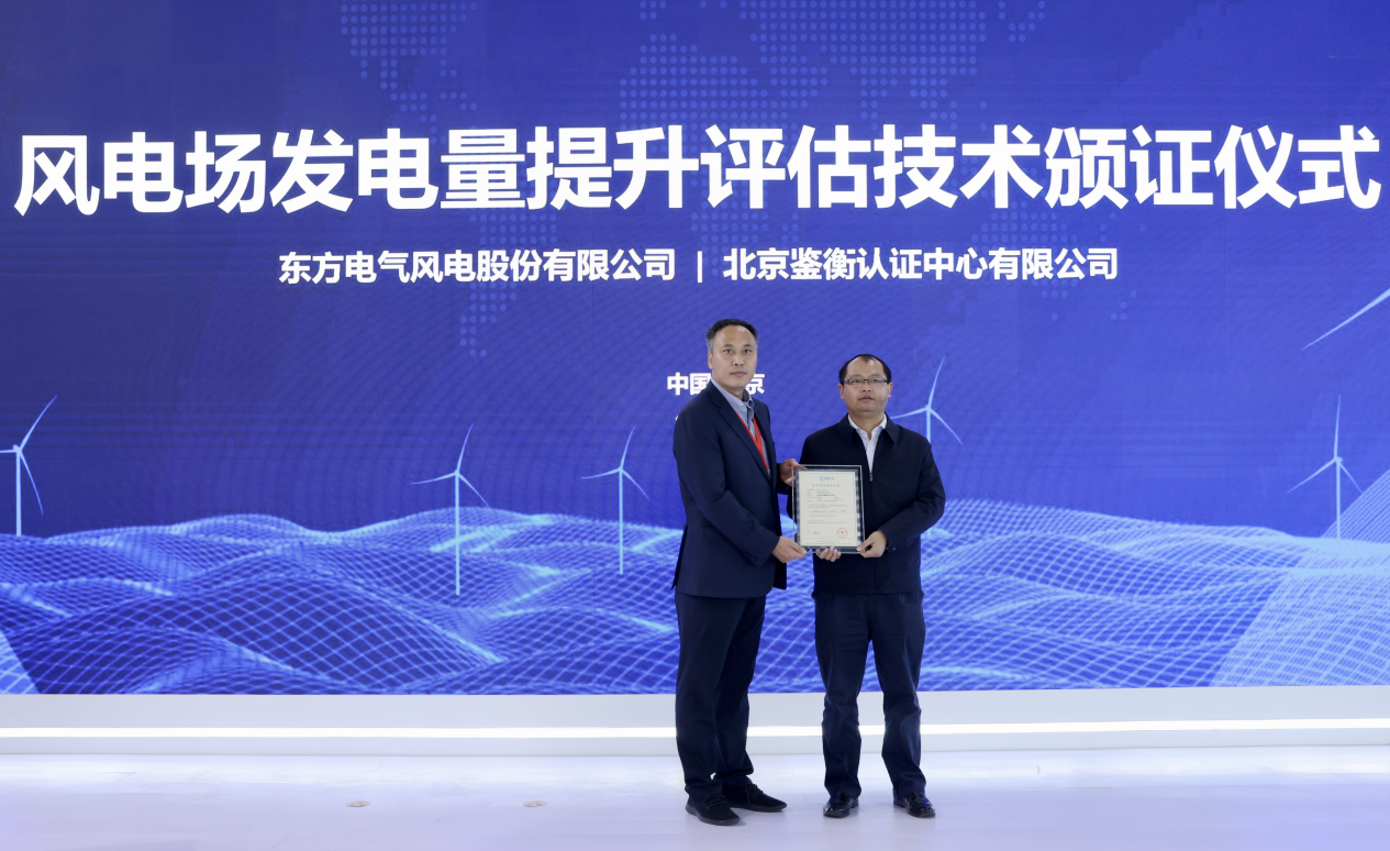 展会期间,北京鉴衡认证中心向东方风电颁发《风电场发电量提升评估技术》认证证书。