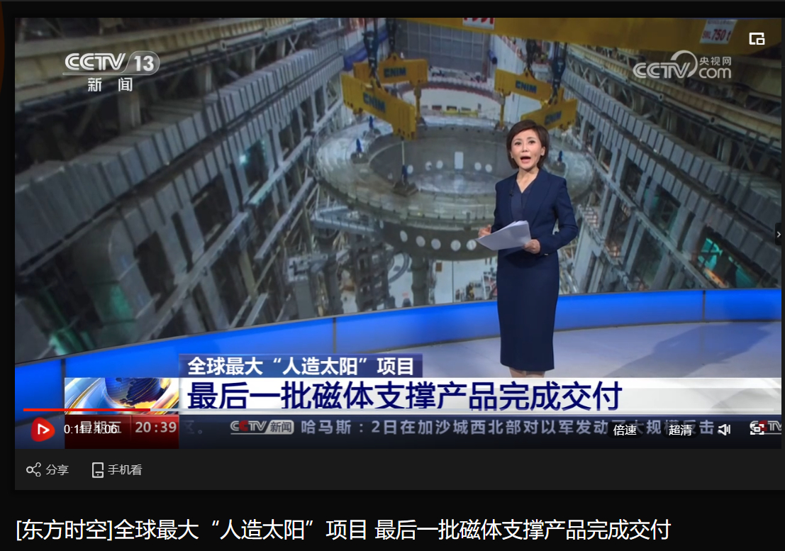 [央视东方时空]全球最大“人造太阳”项目 最后一批磁体支撑产品完成交付