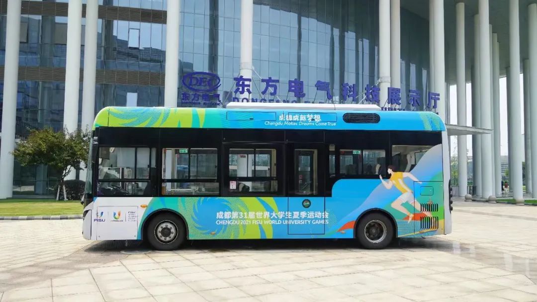 在赛场内,东方电气为本次大运会提供了80辆氢能大巴。搭载东方电气自主研发的氢燃料电池系统,将承担起接送世界各地赛事人员的重要任务,让运动员在近距离感受赛场精彩的同时,也亲身体验到东方电气的“氢动力”和“氢魅力”。在赛场外,市民群众还可选择乘坐搭载东方电气氢燃料电池系统的“熊猫车”,体验这种造型可爱、动力强劲又环保的公交车。