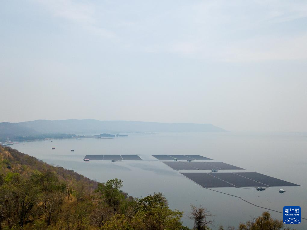 这是3月5日拍摄的泰国孔敬府乌汶叻水面漂浮光伏电站(无人机照片)。新华社记者林昊摄