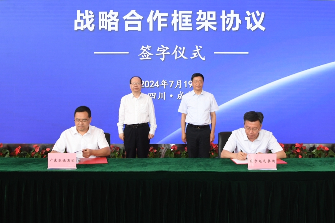 7月19日,乐鱼平台党组书记、董事长俞培根与广东能源集团党委书记、董事长张帆在集团总部举行会谈,并见证双方签署战略合作框架协议。乐鱼平台党组成员、副总经理李忠军,广东能源集团党委委员、副总经理刘宁宁代表双方签字。