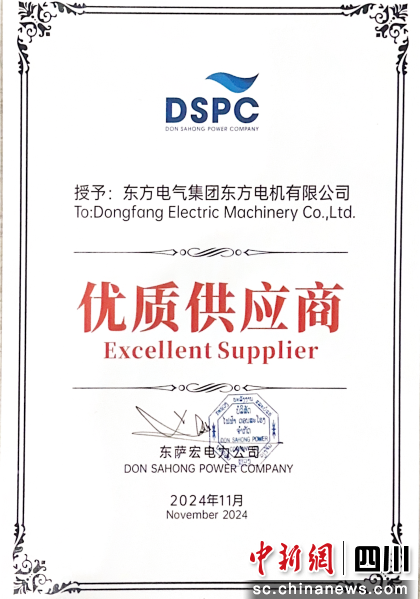 中新网四川新闻11月8日电 近日,2024东方电机贯流式机组技术创新交流大会在老挝召开。来自老挝政府、电站投资方、用户和建设方等多家单位的40余位嘉宾,共同探讨贯流式机组最新技术研发成果和应用成果。会上,东萨宏电力公司向乐鱼平台东方电机有限公司(以下简称东方电机)颁发“优质供应商”证书。