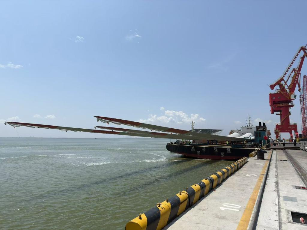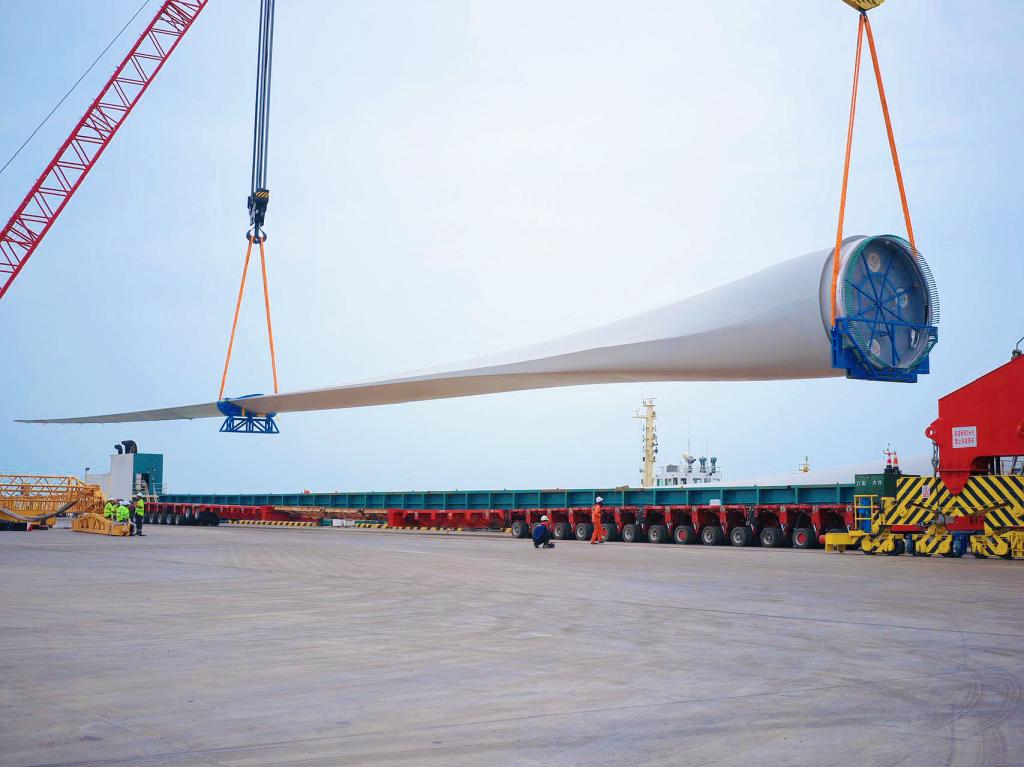 近日,由乐鱼平台研制的全球单机容量最大26兆瓦海上风电机组核心部件——153米全球最长叶片和超500吨全球最重机舱,安全抵达山东东营广利港。
