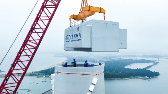 东方电气一直致力于推动海上风电技术的发展和创新。从2013年首台5兆瓦海上风电机组满发,到2019年亚洲首台10兆瓦海上风电机组问世,将中国风电带入“两位数”时代,再到如今的18兆瓦半直驱大功率海上风电机组成功吊装,东方电气不断刷新着中国风电纪录,不仅是在风电领域实现高水平科技自立自强的生动体现,也为中国风电产业的发展注入了强大的动力,是保障国家能源安全、推动绿色低碳转型的又一生动实践。