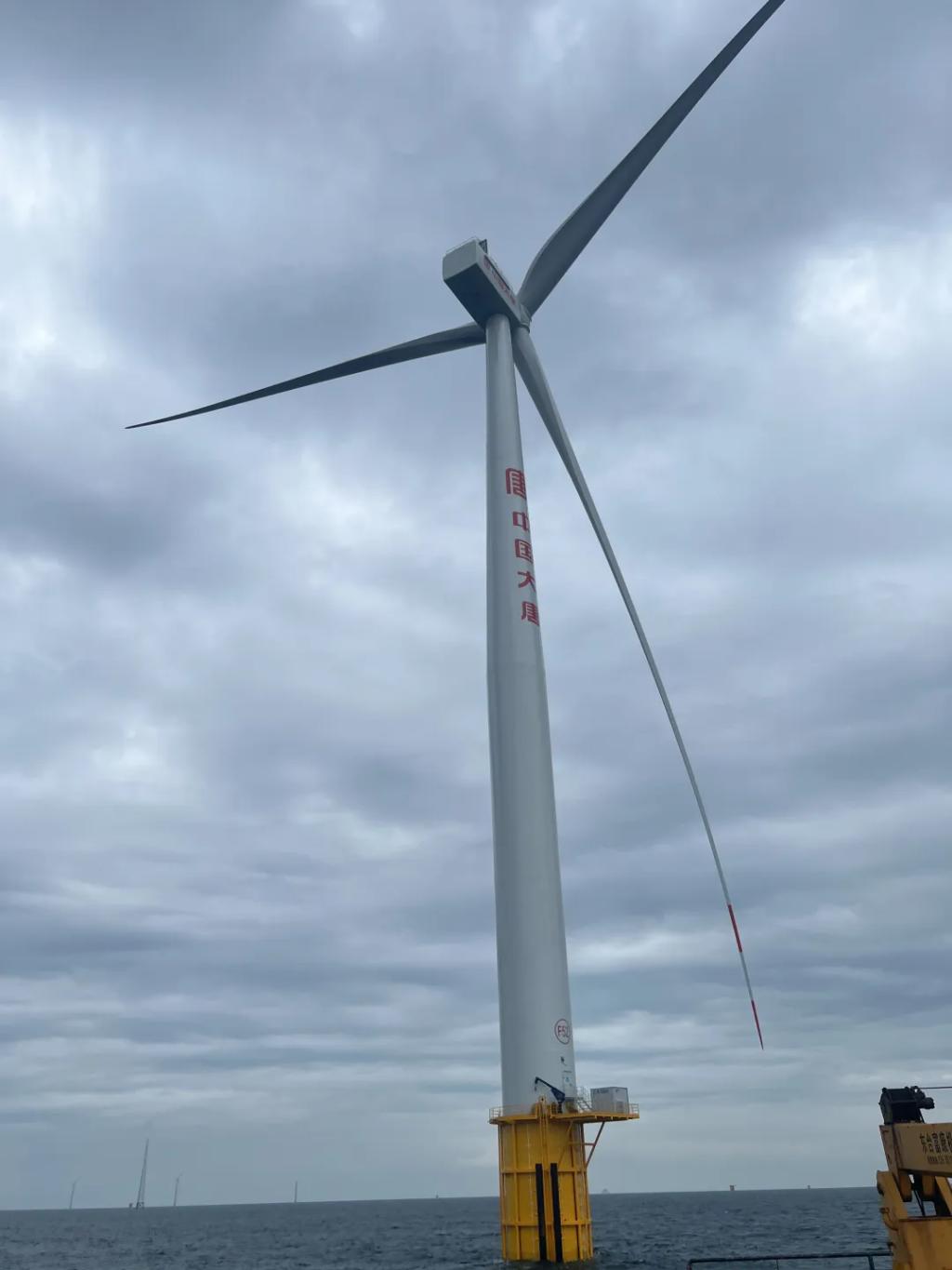 ▲9月9日,大唐海南儋州CZ3场址项目现场,东方电气研制供货的10兆瓦海上风机完好无损。