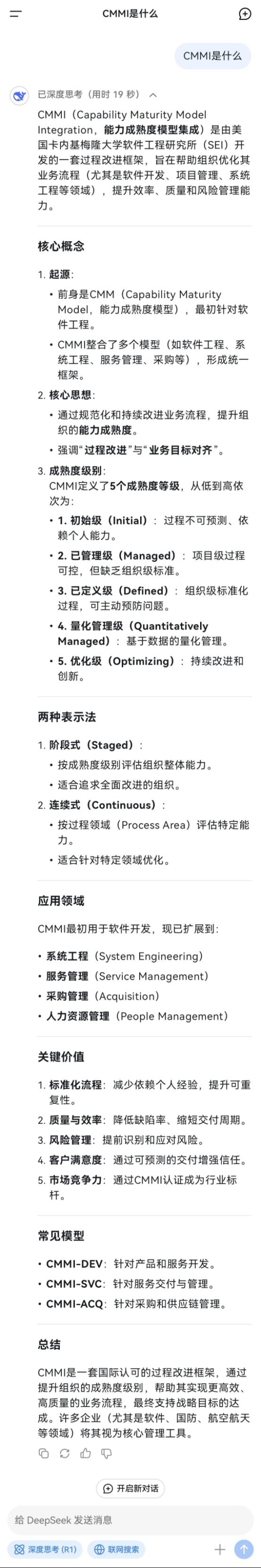 整体而言,CMMI是全球应用最广泛的软件产品质量管理及保证标准,其认证体系分为五个等级标志着软件企业能力成熟度的五个层次CMMI5级是最高的评估等级代表了对认证企业在软件能力标准化规范化及成熟度的最高认可。