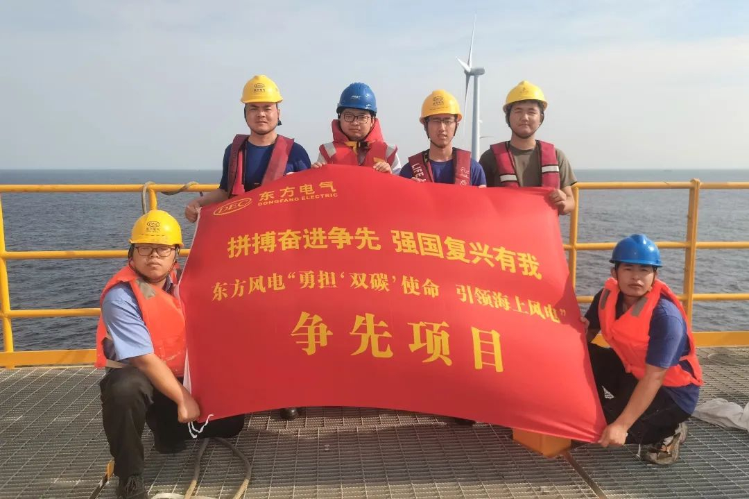 为加快推进13兆瓦抗台风型海上风机安调并网进度,东方风电以创新为抓手,依托争先项目,充分发挥党建引领作用,成立党员攻关团队,全力攻克技术难关。在13兆瓦风机成功下线基础上,成立风电研究设计院党员攻关队,针对百米级叶片组织开展多项分析研究和数次仿真验证,并顺利通过静力测试,保证了叶片的可靠性。同时,攻关队自主研发的全新一代全国产化集成式双驱变桨系统顺利通过鉴衡认证,从根本上解决了超大型风电机组变桨系统的供应链瓶颈与安全问题。另一方面,交付中心牵头,协同研发、供应链、质量、安全各部门,成立13兆瓦风机安调党员攻关队,克服台风、疫情等不利因素,积极推进新技术应用,大胆改进工艺,将叶片安装时间由2天缩短至20小时,效率显著提升。同时,攻关队还开展多次新吊装工艺学习培训,切实为13兆瓦风机安调并网做好准备。