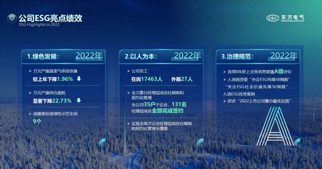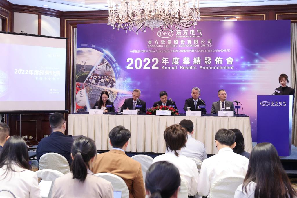 本网讯  4月11日,东方电气股份有限公司在香港召开2022年度业绩说明会。公司董事长俞培根、总会计师刘智全、副总裁高峰、董事会秘书冯勇等公司领导出席会议。来自摩根士丹利、花旗银行、中金公司、中银国际等机构的投资者、分析师共40余人现场参加活动。同时,全球各地超过3000位投资者通过网络、电话等方式参加了业绩说明会。