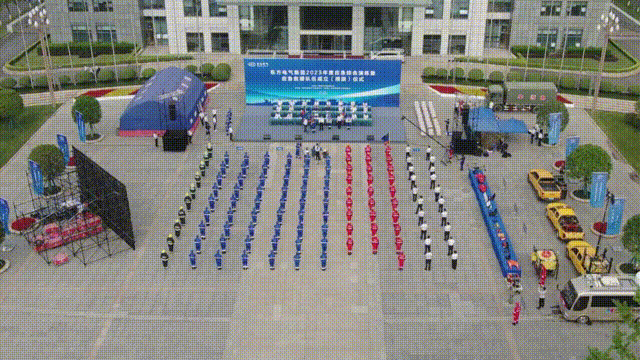 仪式前,东方电气应急救援队与中国安能应急救援队就地震废墟搜救、内涝除险、火灾扑救、高空救援等联合开展了应急综合演练。