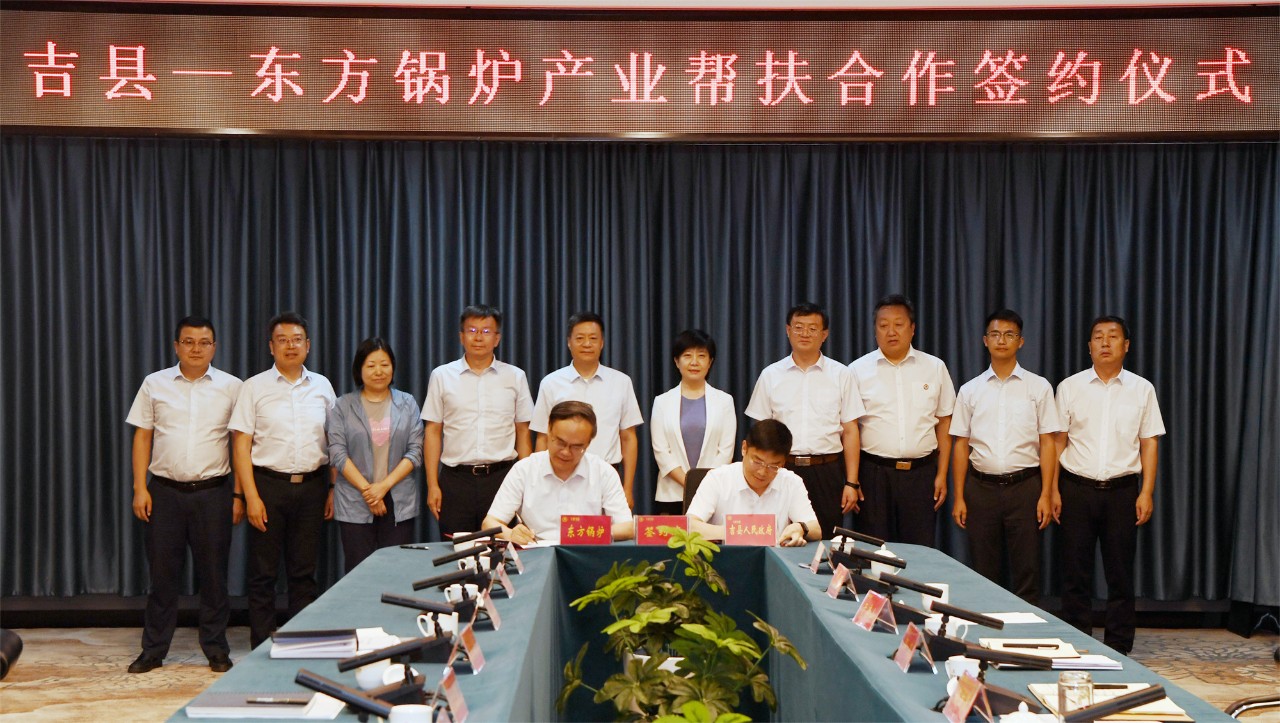 在俞培根、李忠军与吉县县委、县政府领导安娜、尚立春、陈锋等共同见证下,东方锅炉党委书记、董事长林光平与吉县县委常委、常务副县长庞大懿代表双方签署产业帮扶合作协议。双方将立足吉县资源禀赋,充分发挥东方电气自身产业优势,助推吉县打造黄河流域绿色转型新样板,为吉县乡村振兴绘就新图景。