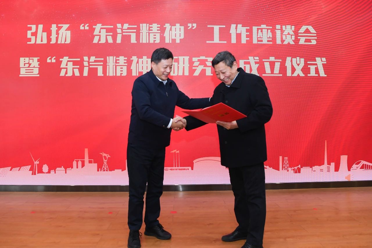 俞培根充分肯定了近年来弘扬和践行“东汽精神”取得的成绩,分析了新时代弘扬“东汽精神”的形势和意义,对下一步重点工作进行了安排部署。俞培根指出,弘扬“东汽精神”,是贯彻落实习近平总书记重要指示批示精神的生动实践,是助推赋能实现新型工业化的必然要求,是加快建设世界一流企业的迫切需要。俞培根强调,成立“东汽精神”研究会,是弘扬、践行和传播“东汽精神”新的起点,要坚持用好“东汽精神”传家宝,推动“东汽精神”成为全体东方电气人的共同信仰,成为支撑创建世界一流的精神力量,推动高质量发展的内生动力。