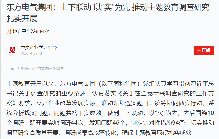 乐鱼平台坚持上下联动、以“实”为先、以学促干,今年1-6月,集团营业收入和利润总额均实现两位数以上增长,取得了自主研制的国内首台单机容量最大功率150兆瓦级大型冲击式水电机组转轮成功下线、全球首次海上风电无淡化海水原位直接电解制氢技术海上中试成功等一批重大创新成果。下一步,集团将持续加强调查研究工作,做好问题检视整改,抓好调研成果运用转化,不断破解前进道路上的矛盾和问题,为企业高质量发展、创建世界一流企业保驾护航。