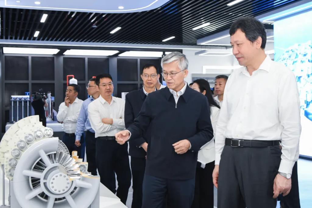 在张彦军的陪同下,靳国卫一行参观了东方电气科技展示厅,深入了解了乐鱼平台的发展历程、产业格局、装备制造、绿色低碳发展等情况。
