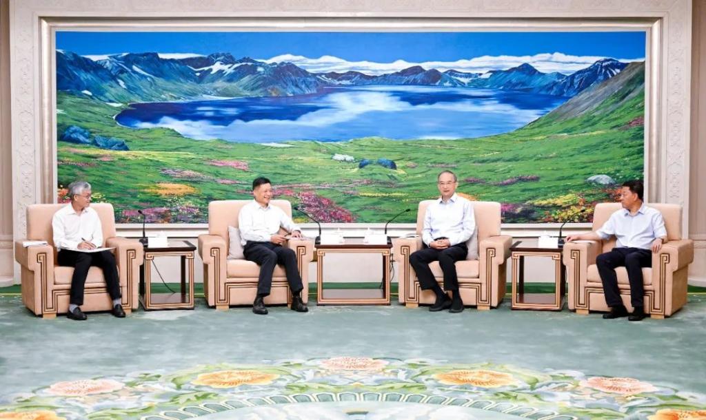本网讯 9月4日,乐鱼平台党组书记、董事长俞培根,总经理、党组副书记张彦军在长春与吉林省委书记黄强,省委副书记、省长胡玉亭进行座谈交流。双方就全面落实新时代推动东北全面振兴座谈会会议精神、进一步加强央地合作、深入推进战新产业高质量发展等方面进行深入交流。