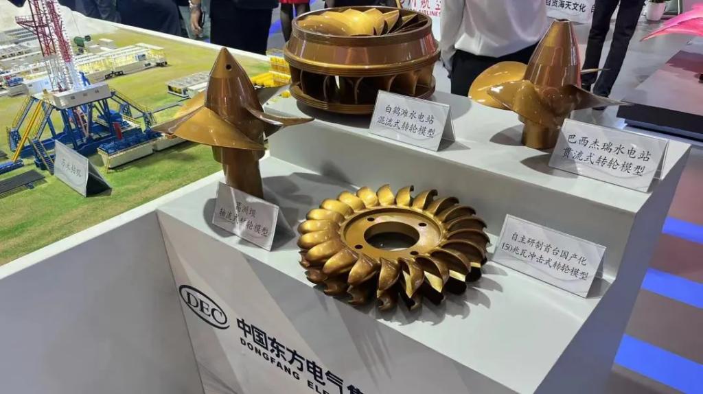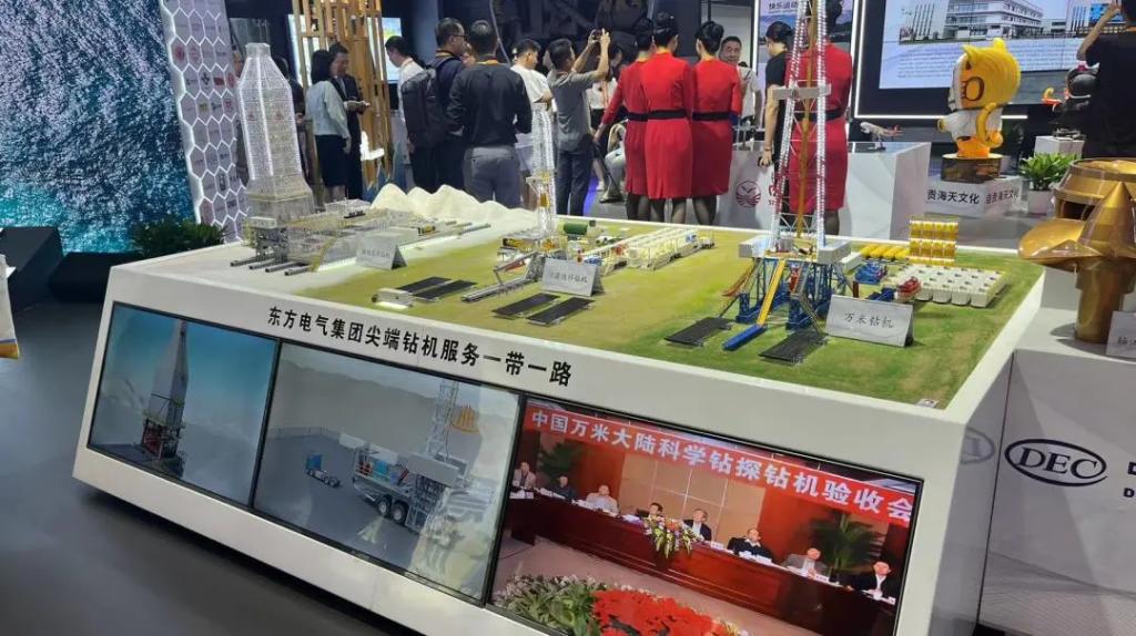 展会期间,东方电气高端钻机、高效水轮机等硬核产品模型惊喜亮相,展示了东方电气“六电六业”的绿色低碳产业布局、产品出口和综合服务贸易,吸引了众多参观者驻足观看,展示了中央企业在服务全球、推动全球能源绿色低碳转型中的积极作用。