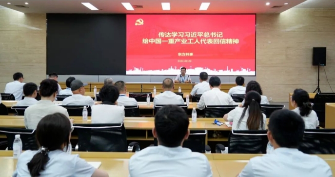 东方重机党委召开会议传达学习习近平总书记重要回信精神。会议要求,要聚焦核能装备制造主责主业,加大改革创新力度,加快推动转型升级,强化产业工人队伍建设,团结引领广大干部职工立足岗位、苦练内功、提高本领,为推动企业高质量发展贡献智慧和力量。