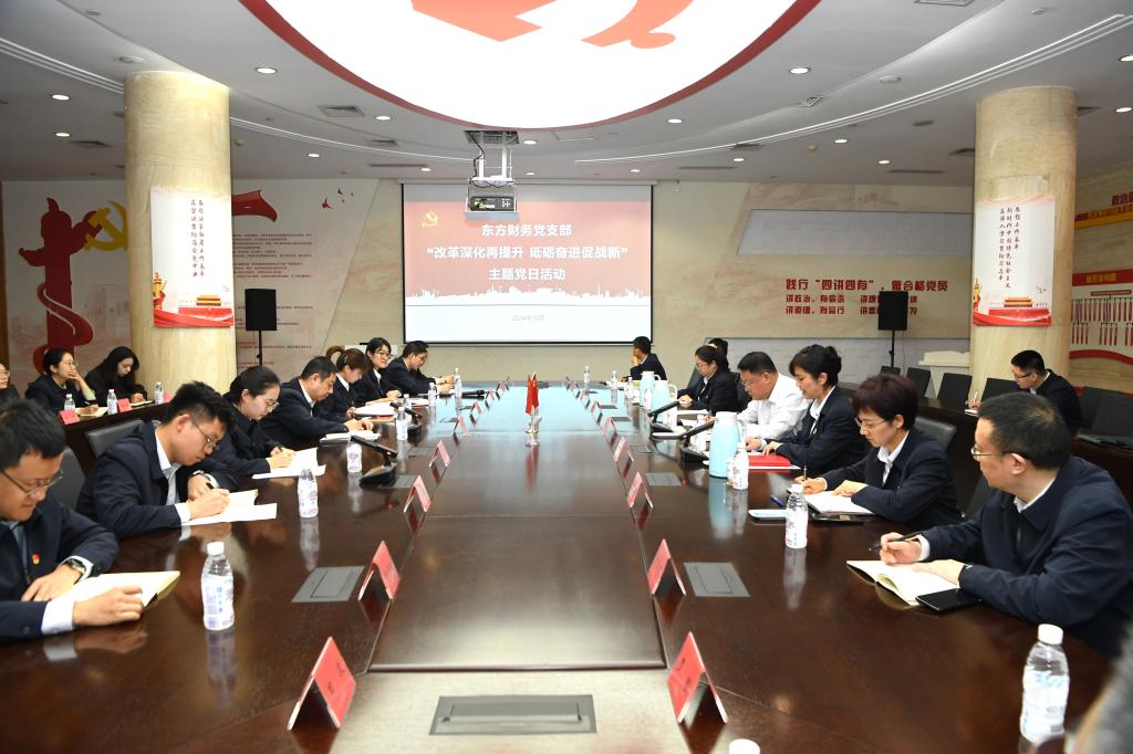 10月16日,集团公司董事、党组副书记宋致远参加联系党支部东方财务党支部主题党日活动,并宣讲全会精神。宋致远强调,要深刻认识全会的重要意义,切实增强学习贯彻的政治责任感和历史使命感;要深刻把握全会精神实质,以钉钉子精神扎实推动企业各项改革任务落地见效;要以学习宣传贯彻全会精神为契机,推进东方财务高质量发展。